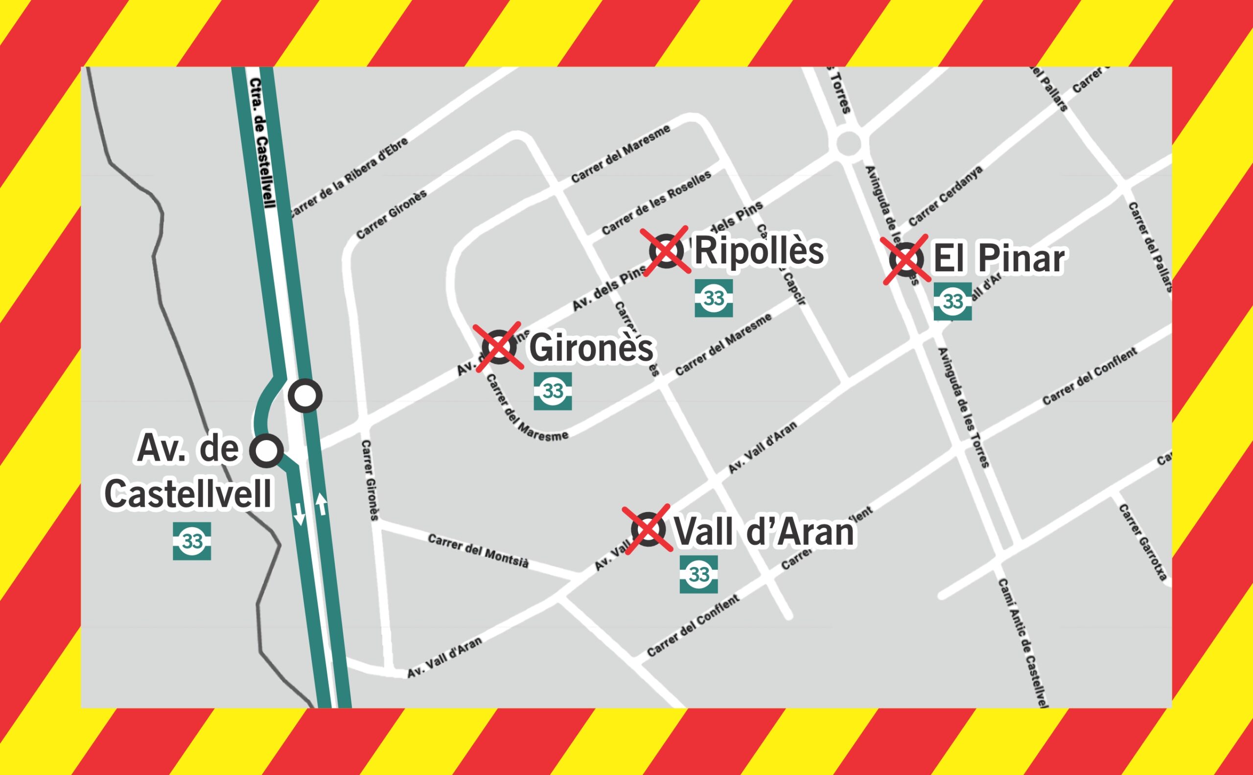 Mentre durin aquests treballs, l’única parada disponible serà la de Ctra. de Castellvell – Av. dels Pins.